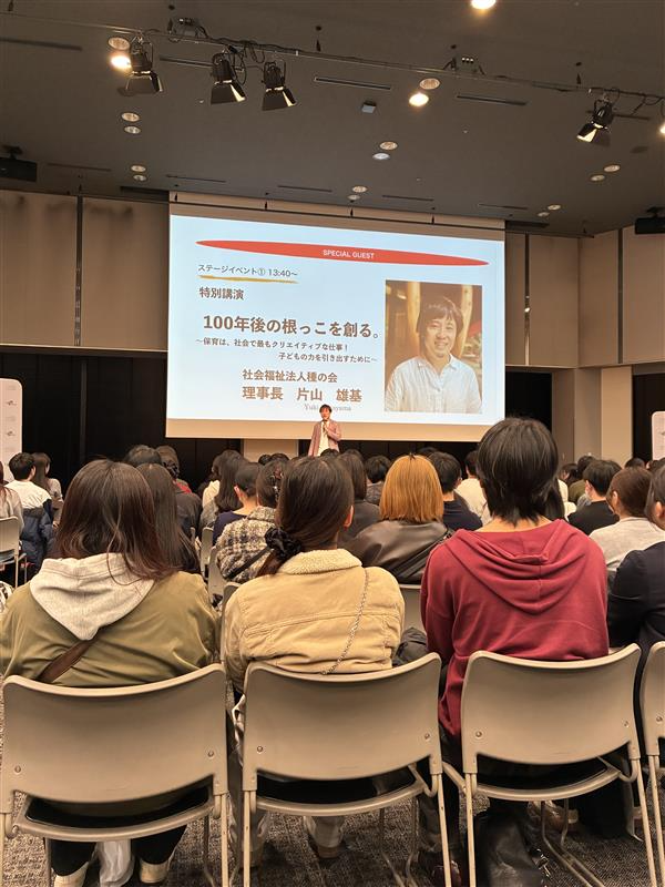 当日は、「100年後の根っこを創る。」をテーマに、種の会の取り組みや福祉業界に入った経緯、これまでの経験から得た学びをもとに、保育・福祉の仕事の価値と今後の可能性についてお話ししました。