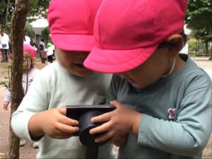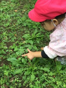 なにがあるかな、と探していると、Mちゃんが見つけたのは葉っぱ。