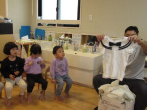 3歳ナノ組さんは10月の24日金曜日にドレスペイントがあります。その為に着る洋服を決めなければいけません。保育者が決めるのは簡単です。
