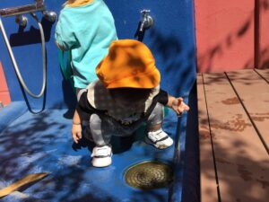 水や葉っぱ、土にお花などたくさんの自然物を思いのままに触れていました。
