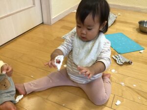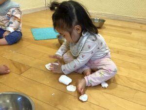 最初は初めて見る素材に不思議そうな表情をしていた子も多かったですが、様々な遊び方をしている子どもたちを見ることができました👀