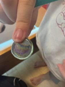 ・「キラキラガチャガチャ屋さんでーす。キラキラのぶどうとかいちごがありますよ。お金はこっちのキラキラね」