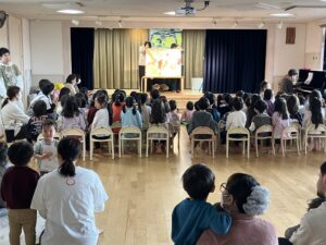 幼児クラスの子ども達は大きな声で始まりの歌をうたい盛り上がりました。