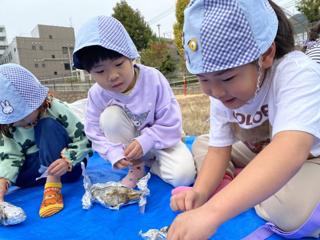 秋の深まりを感じる気持ちのよい季節の中、だいな幼児園の隣にある王子南公園で、『地域ふれあい焼き芋大会』を開催しました。子どもたちは朝から「今日焼き芋の日!」「おいも食べられるかな?」と嬉しそうに話し、始まる前から期待に胸をふくらませていました。