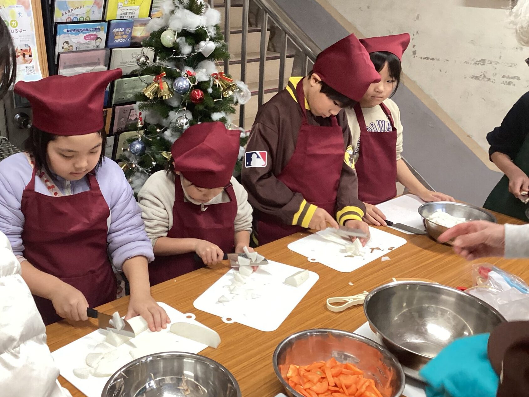 2日前の買い物から準備がスタートし、前日には豚汁の具材となる野菜を子どもたち自身が包丁を使って切り、協力しながら下準備をしました。