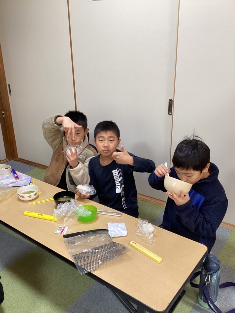 当日は、館長たかっさん特製のあったかい絶品豚汁と、自分たちで心を込めて握った塩むすびをいただきました。