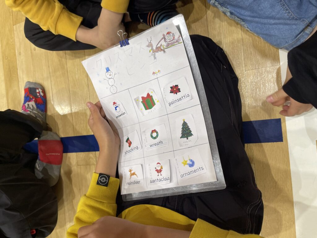 クリスマスにまつわるイラストの中から好きな絵を選んで、オリジナルのビンゴカードを作成しました。「リーチ!」「ビンゴ!」と元気な声があちこちから聞こえ、会場は大盛り上がりでした。