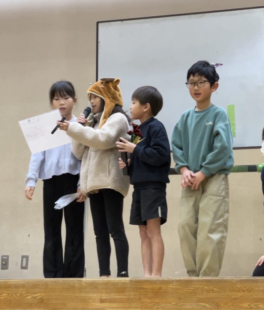 原田児童館の子どもたちの出し物はクリスマスビンゴ大会!実行委員の子どもたちは、約1か月前から「みんなに楽しんでもらいたい!」という思いで準備を進めてきました。話し合いを重ね、当日は緊張しながらも立派に司会や進行を務めてくれました。