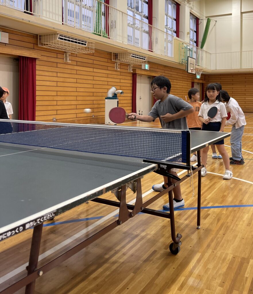 卓球をやったことある子どもたちも、選手の方々と1対1でラリーを交わして楽しみました。勝負意識が高い子どもたちは「全員に勝ちたい!」と闘志を燃やしていました。