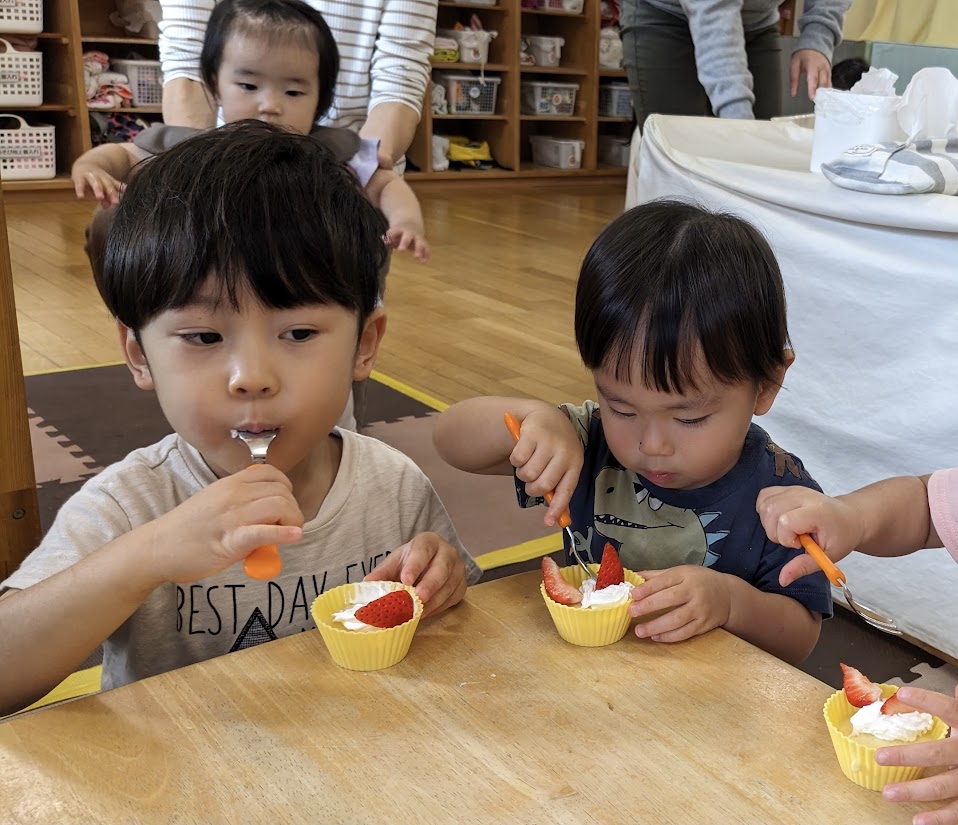 「イチゴのケーキいただきます!」「おおきいいちごある!」と言いながら遊んでいました!