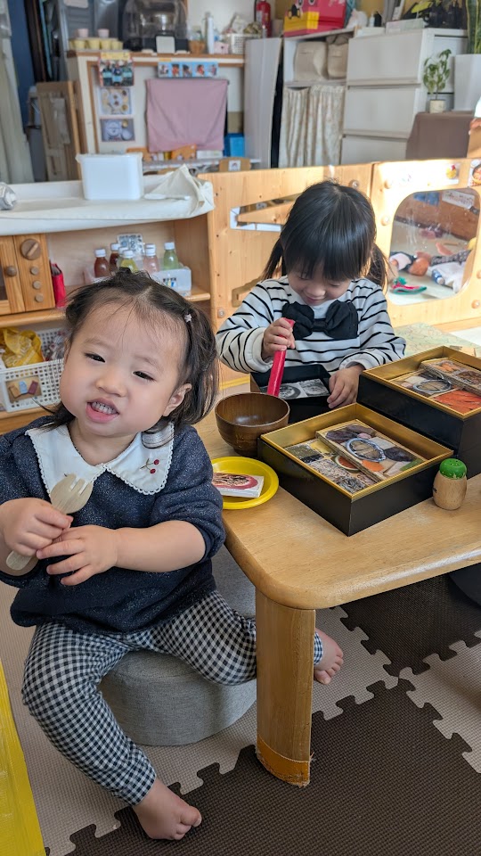 ままごとで、おせち料理ごっこをしました!「これは、よろこんぶ!」「おいしいね!」