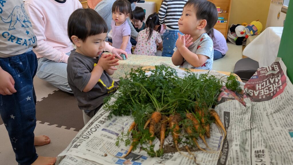 2歳児でにんじんスープのクッキングをしました。おかわりもして、全部食べ切りました!