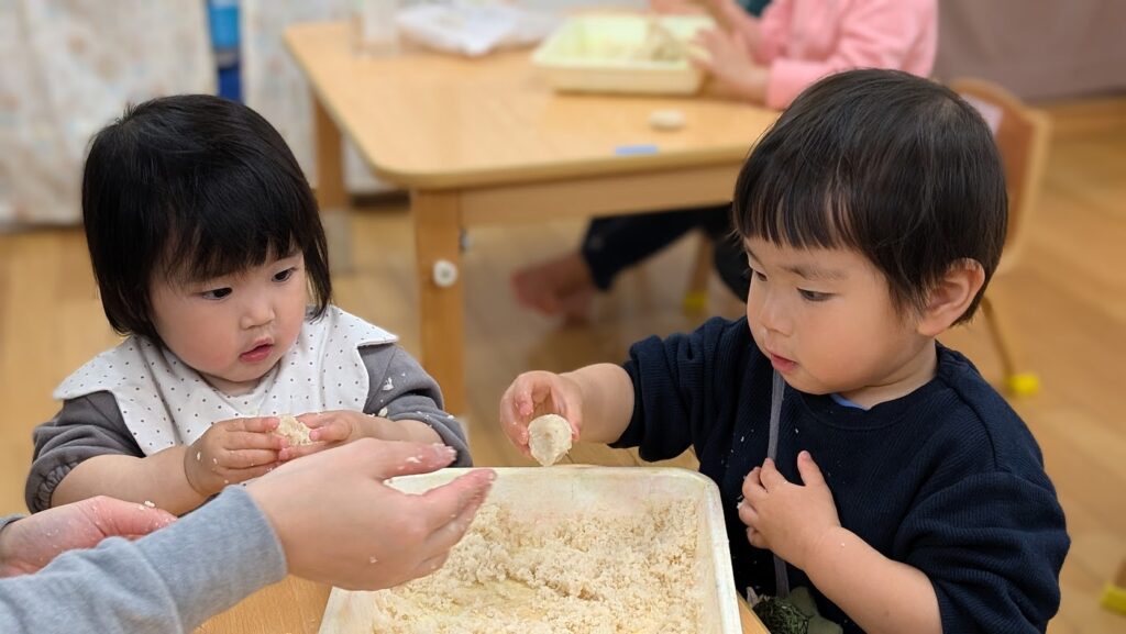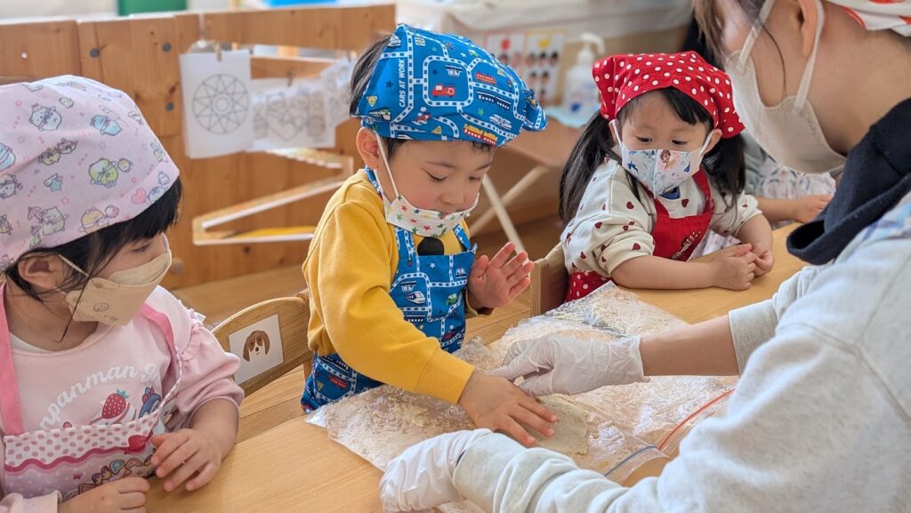 バレンタインということで、2歳児(そらグループ)で型抜きクッキーのクッキングをしました!