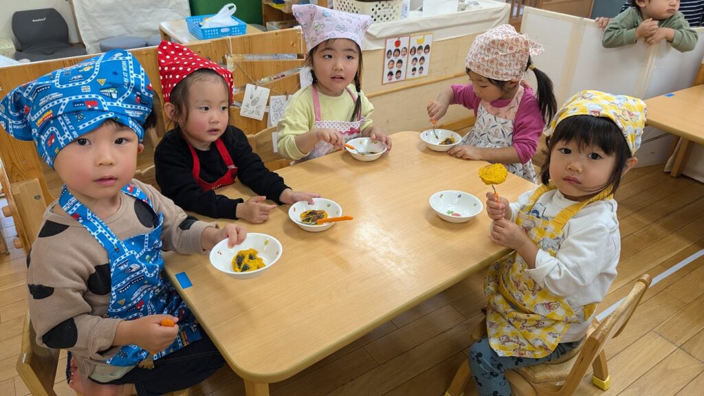 ハロウィンの日にはかぼちゃホットケーキのクッキングをしました🎃