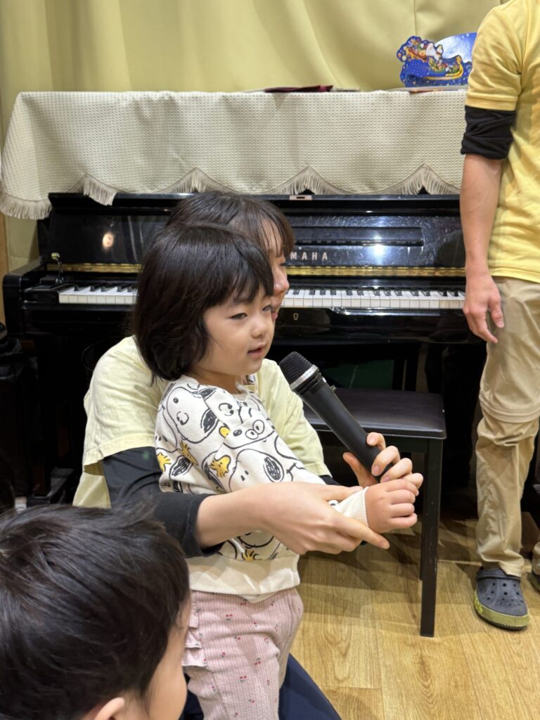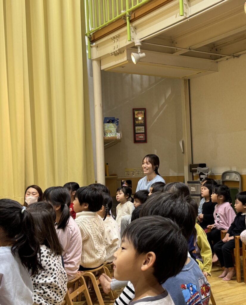 12月12日(金)にはっとこども園に一足先にフィンランドよりサンタクロースがやって来ました。サンタクロースが登場するとその雰囲気に圧倒されて息を飲むように静まりかえっていました。サンタクロースに興味津々の子ども達。フィンランドの言葉で「ようこそ」=Teretuloa(テルヴェトゥロア)を伝えると「ありがとう」=「キートス」と返事をもらいとても嬉しそうでした。「トナカイはいまどこにいるの?」「サンタさんのすきなたべものは何?」などとたくさんの質問にも答えてくれました。最後にお菓子のプレゼントを貰い、クラスごとに記念撮影をしました。「またきてね」と手を振ったりハイタッチをして名残惜しそうではありましたが、子ども達も保育者も楽しむことができ、思い出に残る素敵な一日を過ごすことができました。