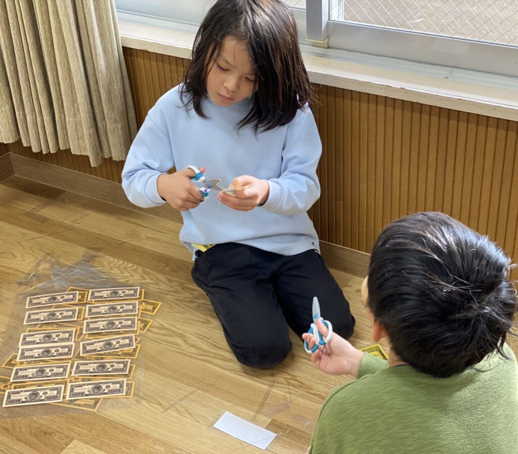 そしてクリスマスにサンタさんからもらったプレゼントを皆で使いやすく、片づけやすくしました。折れやすいお金はラミネートしよう!