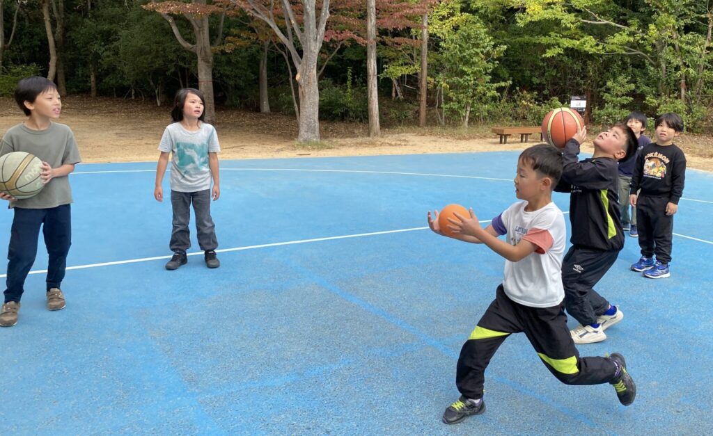 バスケットゴールがありました!練習されていたお兄さんにバスケットを教えてもらいました。