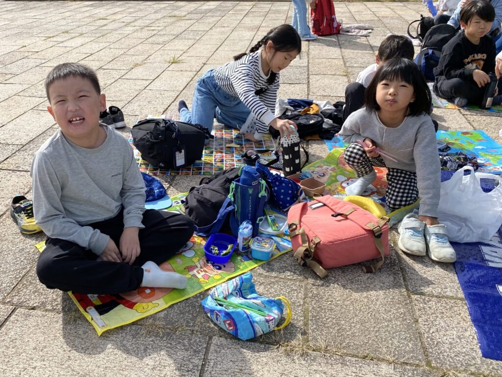 公園の真ん中で2列に並ぶ。所要時間6分でした。振り返りでは(上手に逃げられたと思う。)という子が多くいました。改善点もまだまだありますが何度も何度も訓練を重ねたいと思うし、万一地震が来た時は全員無事に逃げ切りたいと思います。