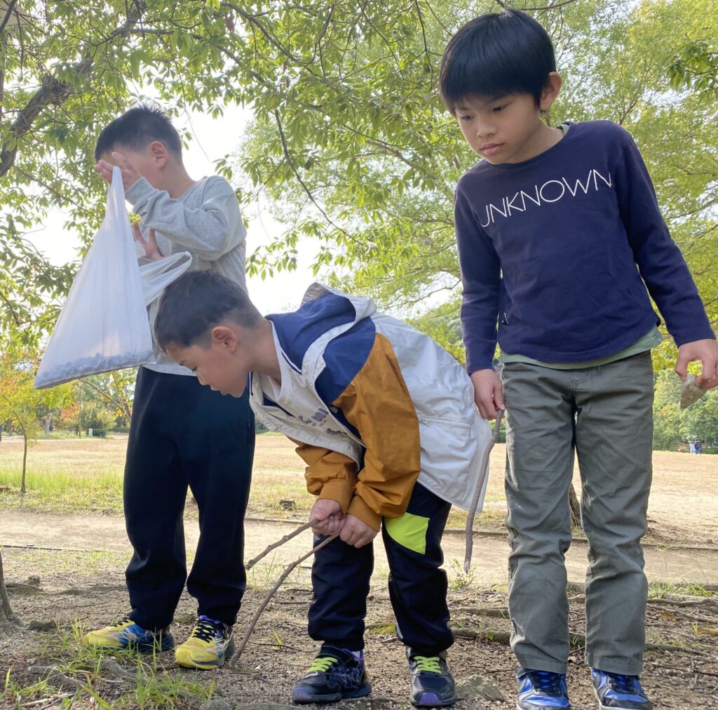音楽会の代休日に丸山公園に【秋探し遠足】に行きました。広い広い公園!摩耶山は赤・黄・色とりどりでとてもきれいでした。みんなで秋探し。