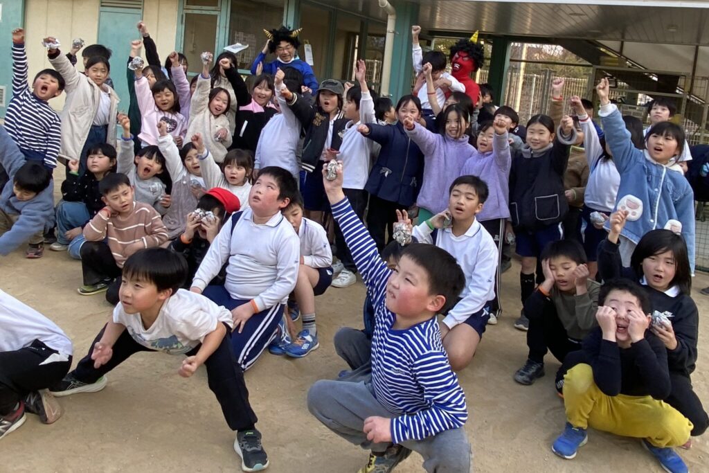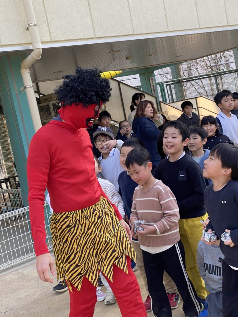 そして稗田小学校の校庭で鬼退治!
