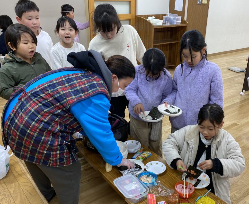 そして恵方巻作り。今年の方向は・・・南南東。お話せずに食べられたかな。みんなで作って食べると美味しいね。楽しいね。