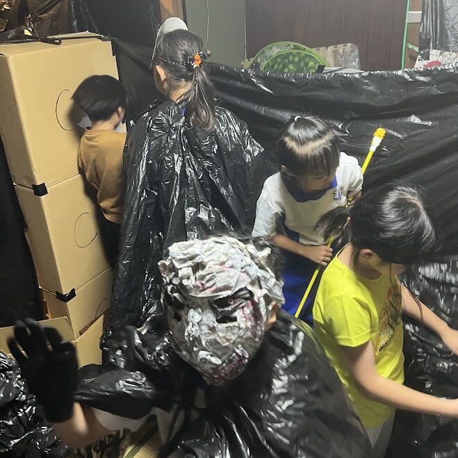 🎃お化け屋敷2025👻 10月29・30日にお化け屋敷を開催しました👻🎃 3年生は衣装づくりにも気合が入ります💪 オリジナルで特製のお面も作りました🤗 お化け役と仕掛け担当に分かれて準備中…控室の中はバタバタです! 1年生も初めてのお化け屋敷に大興奮!怖がりながらも楽しい時間を過ごせました 2025年11月18日 火曜日 カテゴリー: コーナーの取り組み