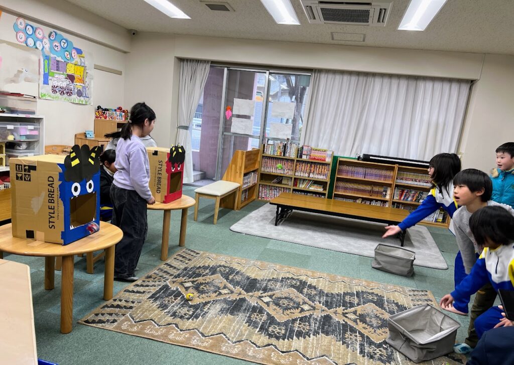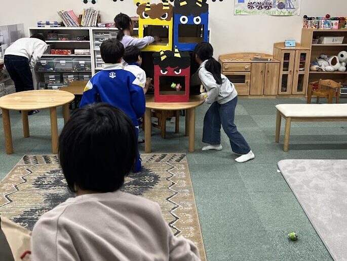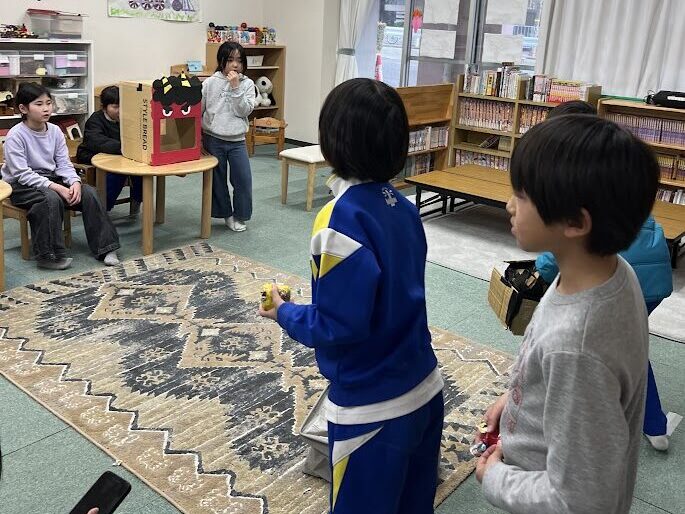 節分の日の様子🧧🥜 2月3日(火)の節分の日には、おやつに福豆を食べた後節分玉入れバトルを開催しました! 3学年混合で2チームに分かれ、1分間でどれだけ入れられるか競い合いました。 チームごとに作戦会議🤔💭 難易度高めで挑戦!なかなか入らず苦戦していましたが大いに盛り上がりました☺️🎉 ゲームの後には自分たちで鬼を組み合わせて時間いっぱい遊びました✨✨ 2026年2月26日 木曜日 カテゴリー: コーナーの取り組み