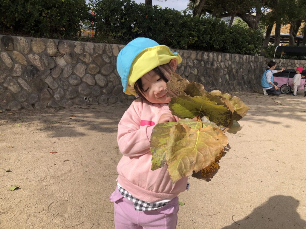 11月に入り、岩屋公園で遊ぶことが増えました。以前より体力がついてきた子ども達。走ったり、友達同士で追いかけっこや、かくれんぼを楽しむ姿が見られました。