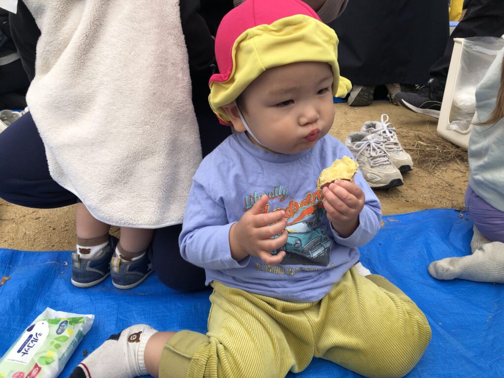 11月は、だいな幼児園で開催の焼き芋大会に参加しました。だいなのお兄さん・お姉さんに焼き芋を渡してもらい、みんなで食べました。焼き芋の皮を自分でむいて食べたり、「美味しいね♪」と友だちとお話ししながら、楽しい時間を過ごすことができました。
