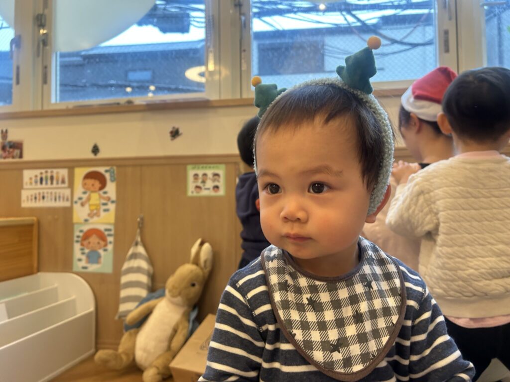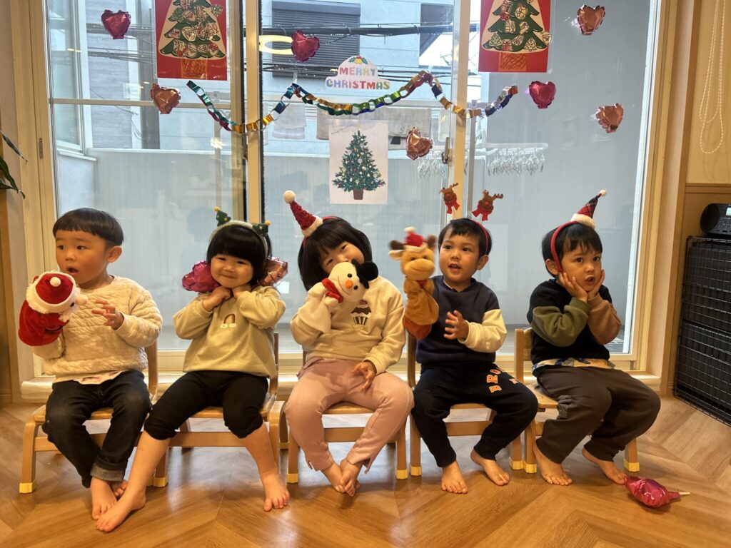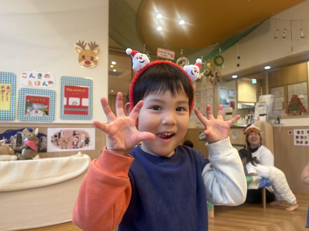 先生たちの出し物『パネルシアター・クリスマスライブ』を楽しんだり、被り物をつけてクリスマスの雰囲気を味わいました♪