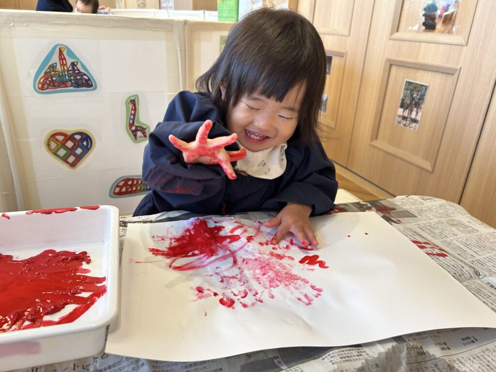 絵の具の感触や色が滲んでいく様子を楽しんでいました!