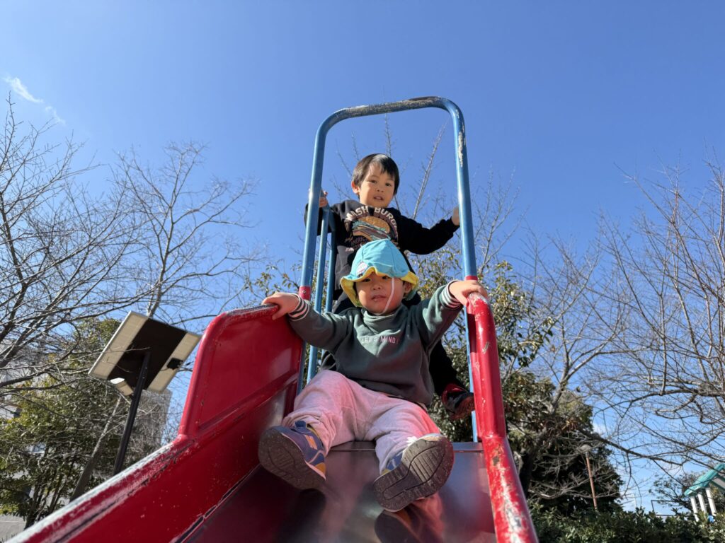 求女塚公園や岩屋公園で戸外遊びを楽しみました。ブランコやすべり台、お店屋さんごっこをして楽しんでいます!