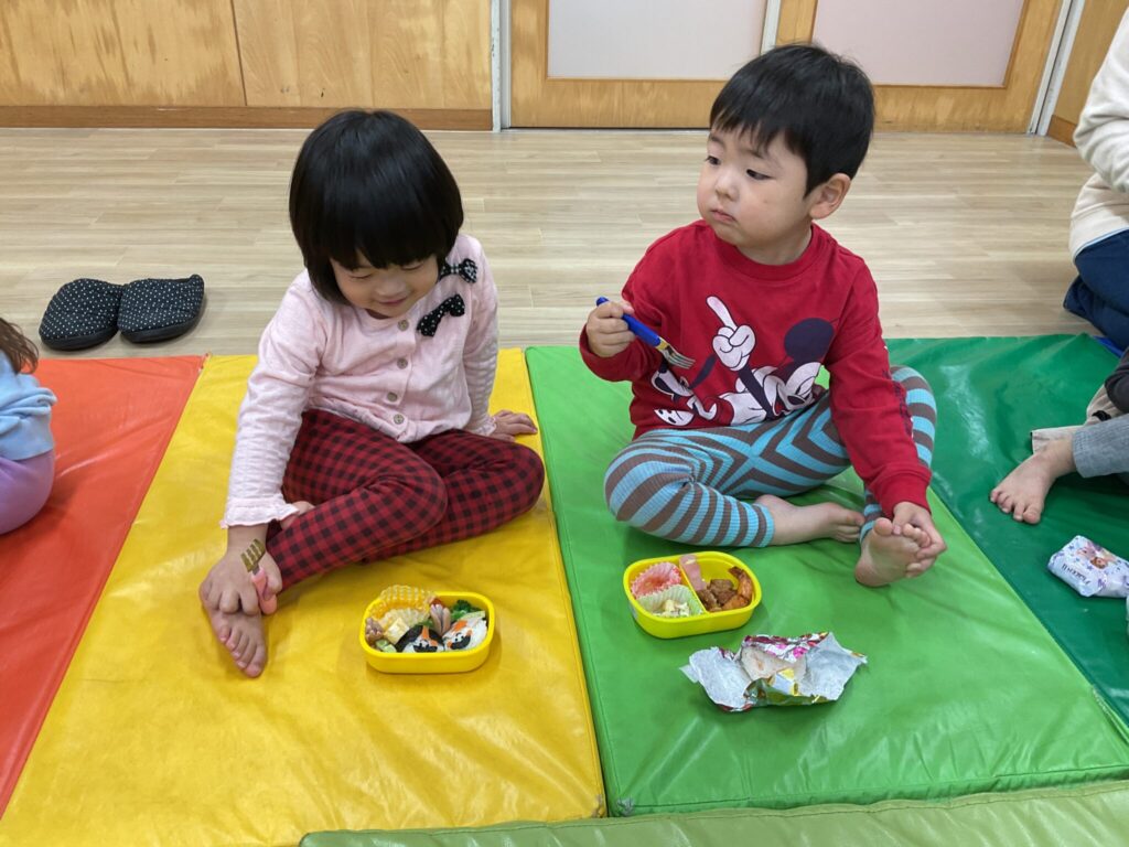 お別れ遠足・遠足ごっこ 幼児クラスのお別れ遠足、乳児クラスの遠足ごっこが行われました。幼児クラスはバスに乗って、遊びの施設へ行きました。あいにくの雨でしたが、レインコートを来て出発!室内ゲームを楽しみ、お弁当を食べてきました。4歳児5歳児は、プールで遊んで帰ってきました。乳児クラスも園内でたくさん遊んだ後、お弁当を食べました。保護者のみなさん、おいしいお弁当をありがとうございました。 2026年3月16日 月曜日 カテゴリー: 園の取り組み