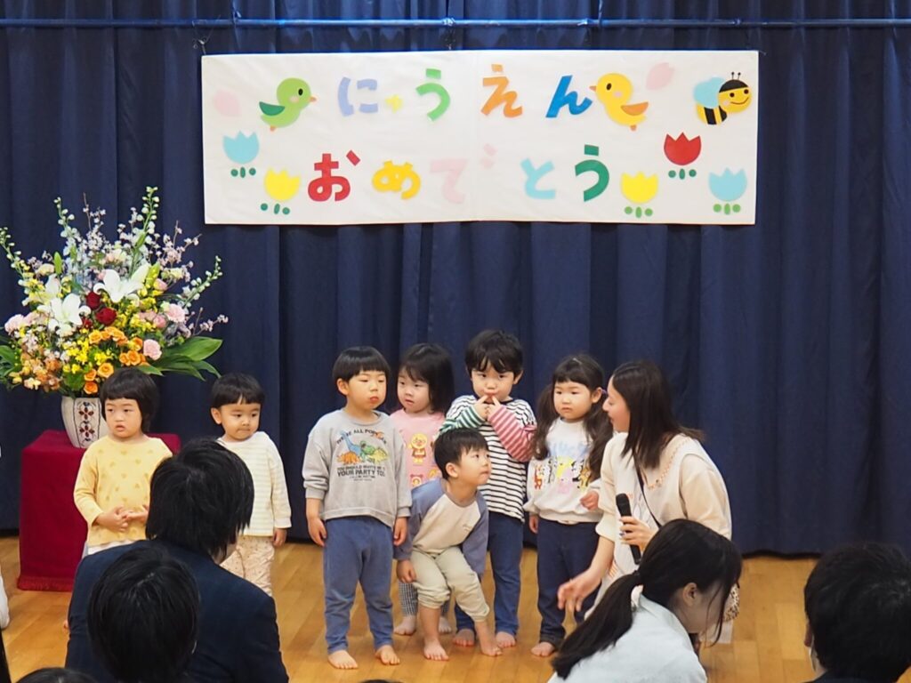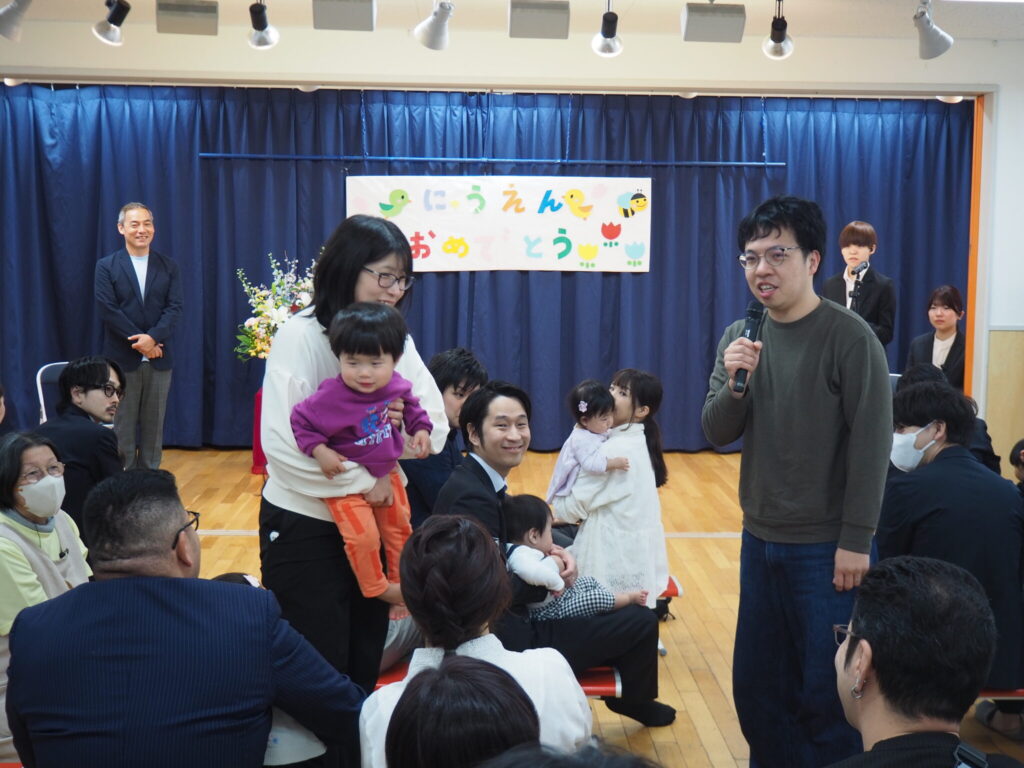 活動ブログ: 2026年 4月 幼保連携型認定こども園 つどいの森もみの木こども園 > 活動ブログ > 2026年 > 4月 🌸入園お祝い会🌸 2026年4月8日 水曜日カテゴリー: 園の取り組み 4月1日に入園お祝い会がありました。 ご家庭ごとに挨拶をしていただきました。 クラス紹介では、クラスごとに前に出て挨拶をしました。ドキドキしているようでしたが、「まってるよ~」「よろしくね!」と手を振っていました😊 これからみんなで楽しい思い出をたくさん作ろうね♪