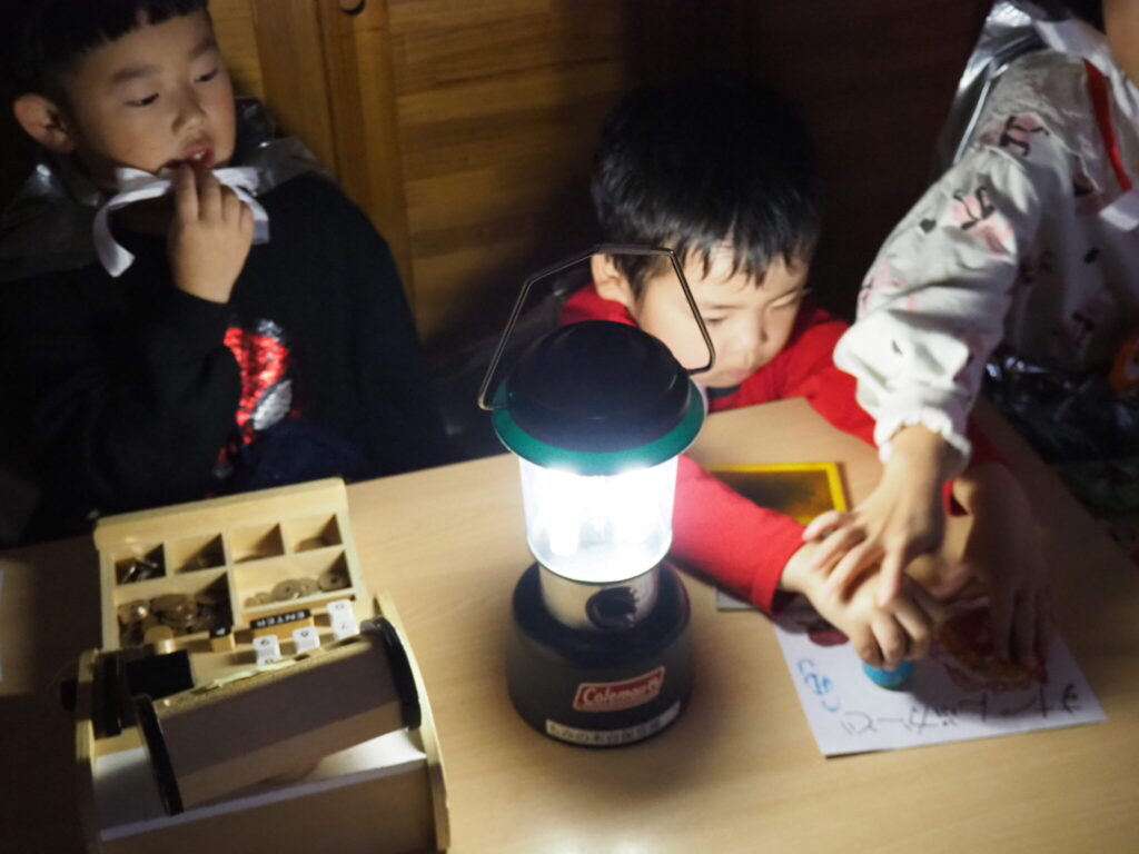 園の一階では『暗闇探検』も行いました。いつもとは違った保育室をドキドキしながら進んでいきました!!