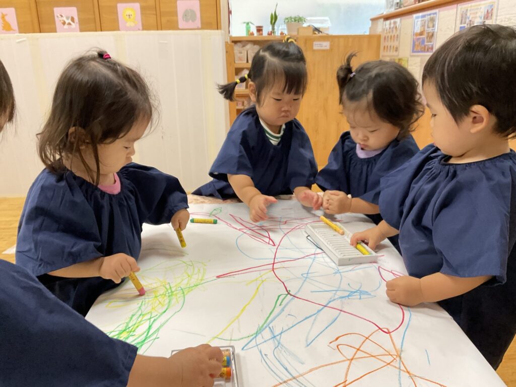 ◎1歳児はなグループさん・・・思うままに一人ひとりが集中して描いています。