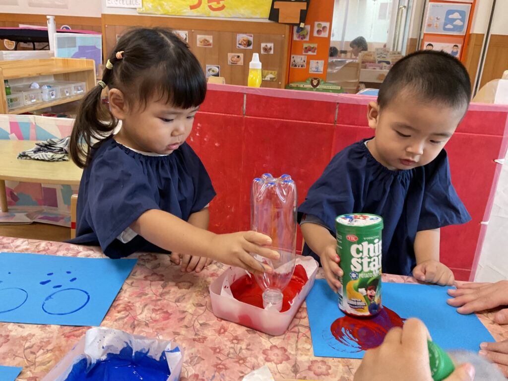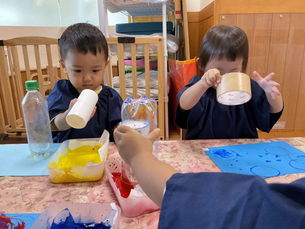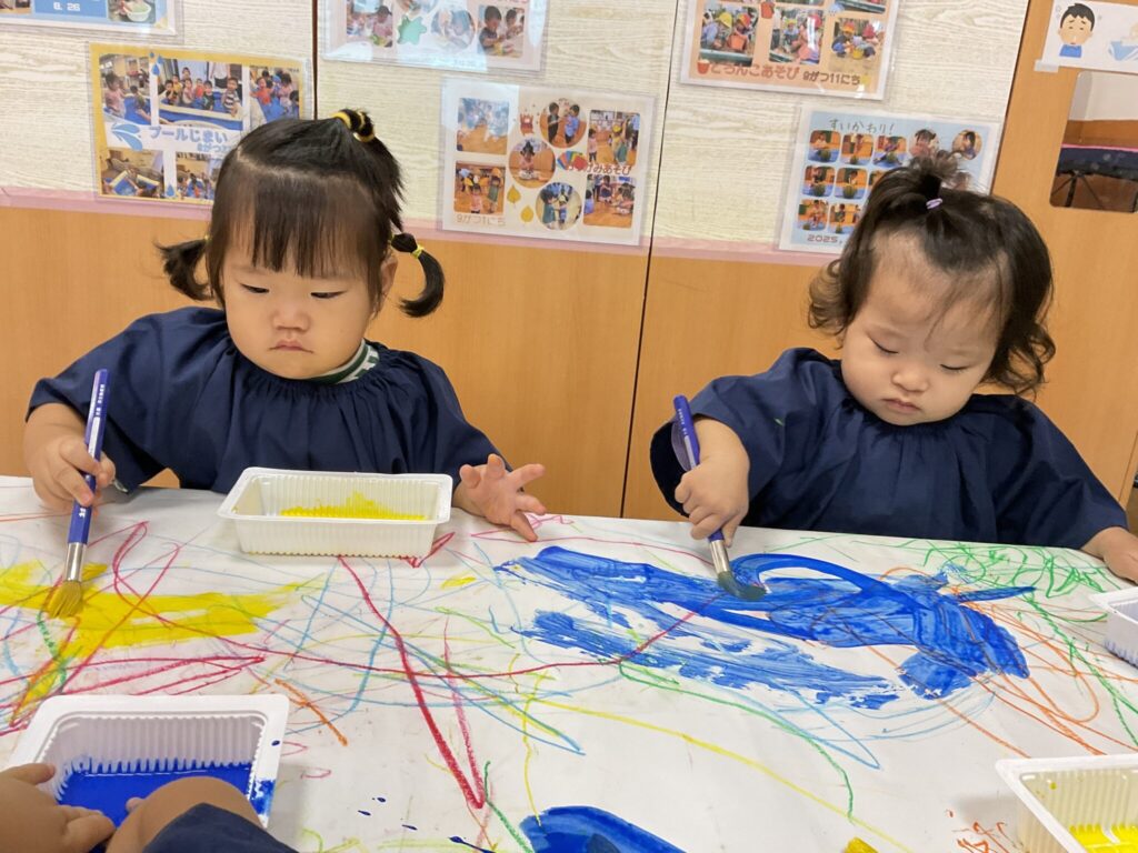 1、2歳児分かれてお絵描や絵の具あそびをしました。