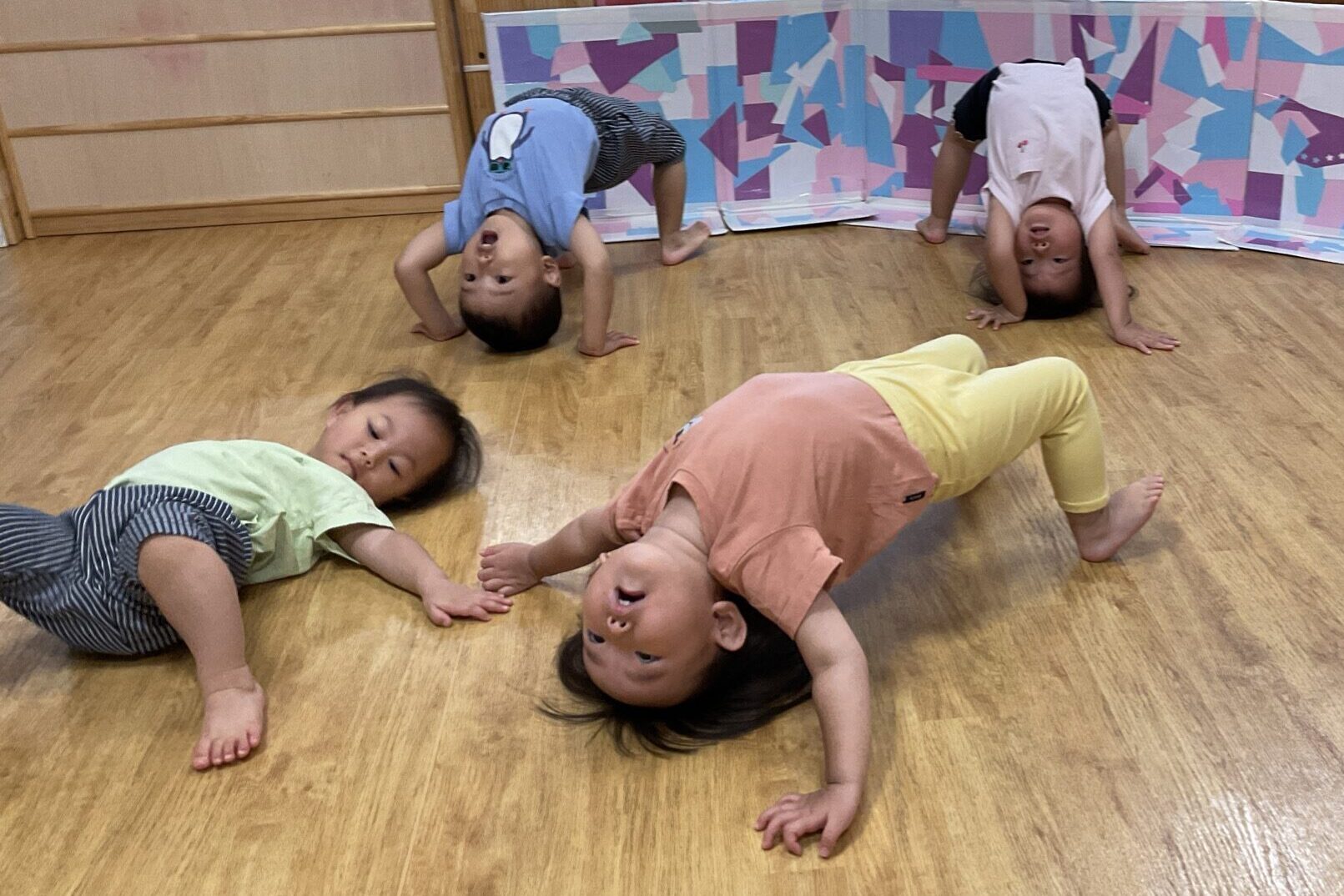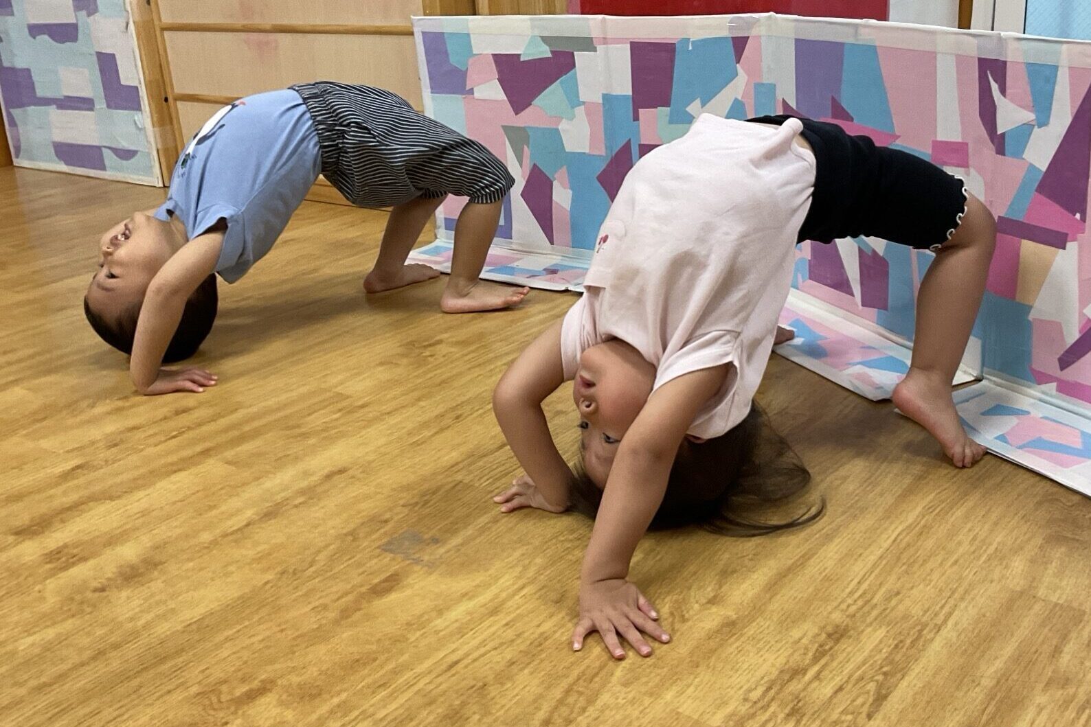 音が聞こえると自然と動きを始める子ども達。先生の補助なしでこんなに上手にブリッジが出来ます!繰り返しの中で子ども達の自信に繋がっています。