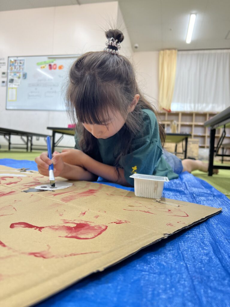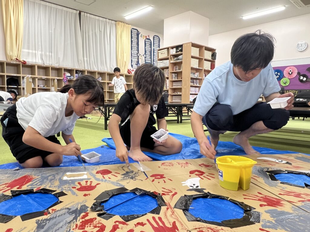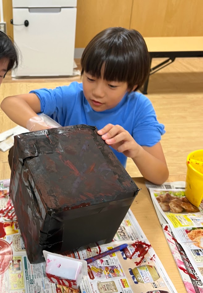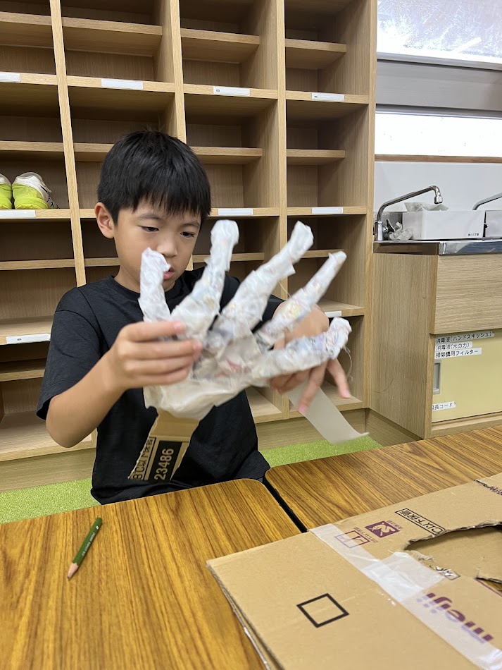 活動ブログ: 2025年10月 神戸市立 灘の浜学童保育コーナー > 活動ブログ > 2025年 > 10月 ハロウィン準備中🎃 2025年10月27日 月曜日カテゴリー: コーナーの取り組み 10月29日にハロウィンパーティーを開催します。絶賛準備中!!お化け屋敷も建設中。 この箱の中には何が・・・(怖) 絵具を吹き付けて、血のりにします。 驚かせ用の手を作ってます。 お面を製作中 お化け屋敷、建設中 真剣そのものです!! かっこいいマントだね! 29日が楽しみ🎃 素敵なマントが出来ました💕