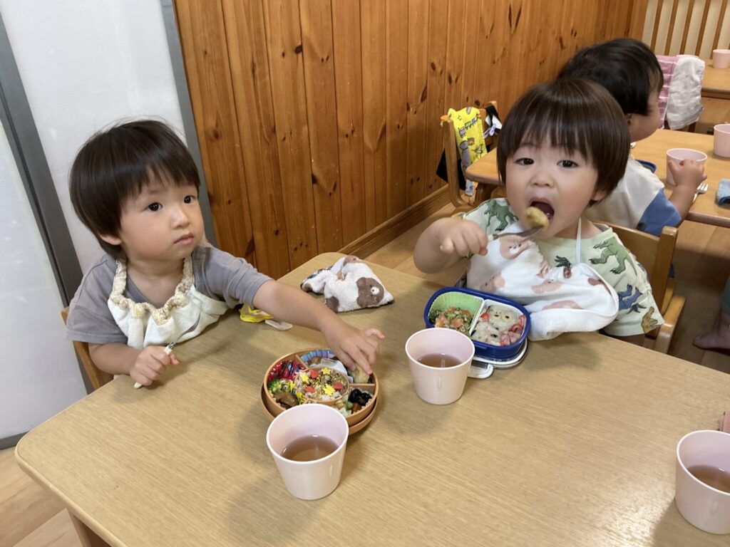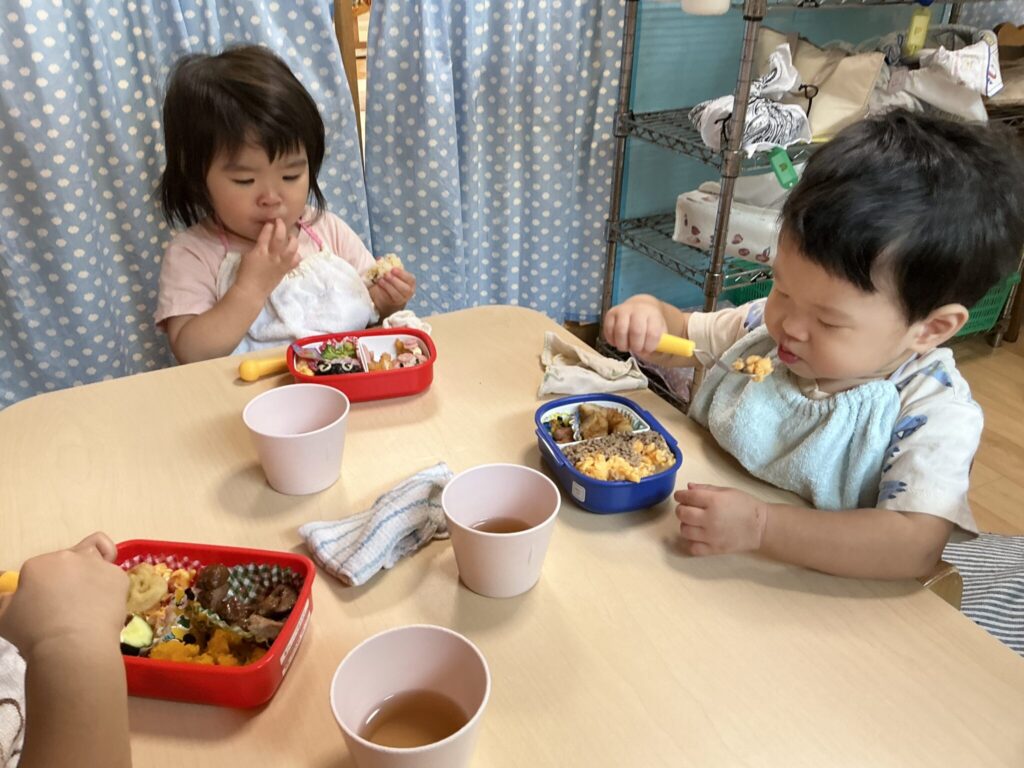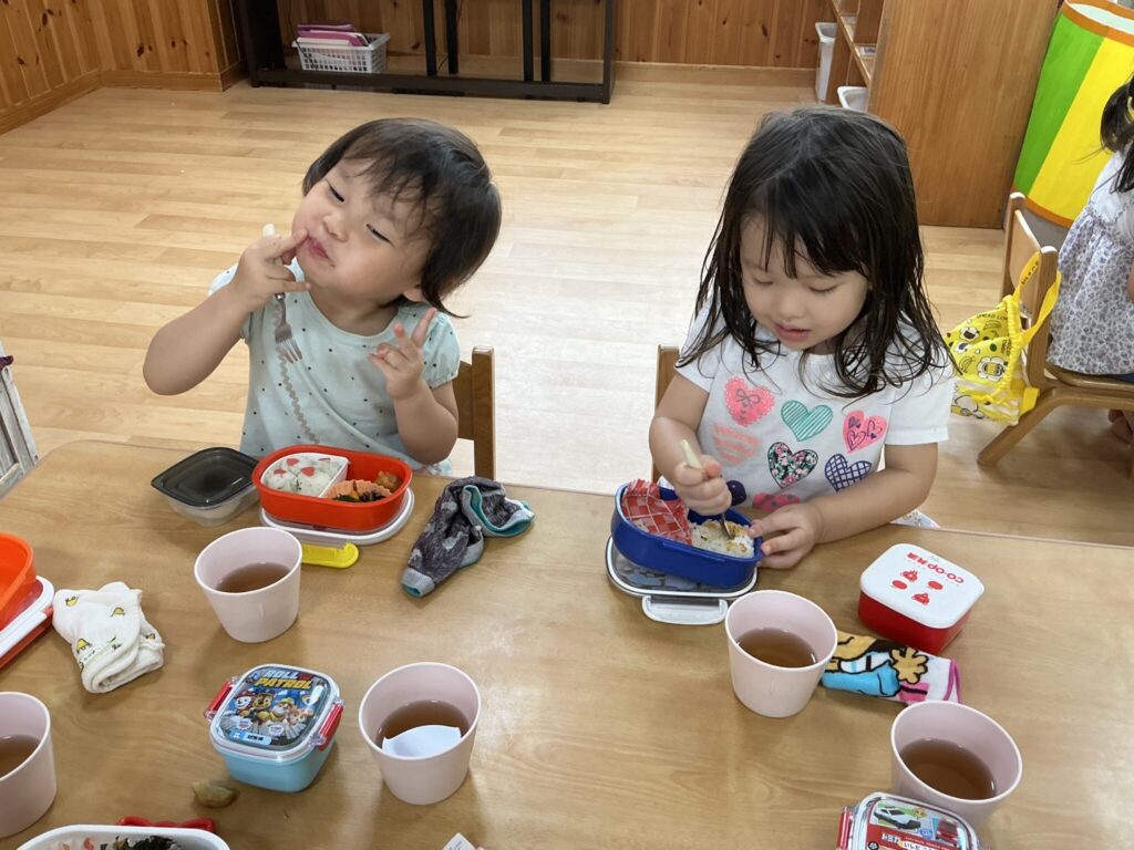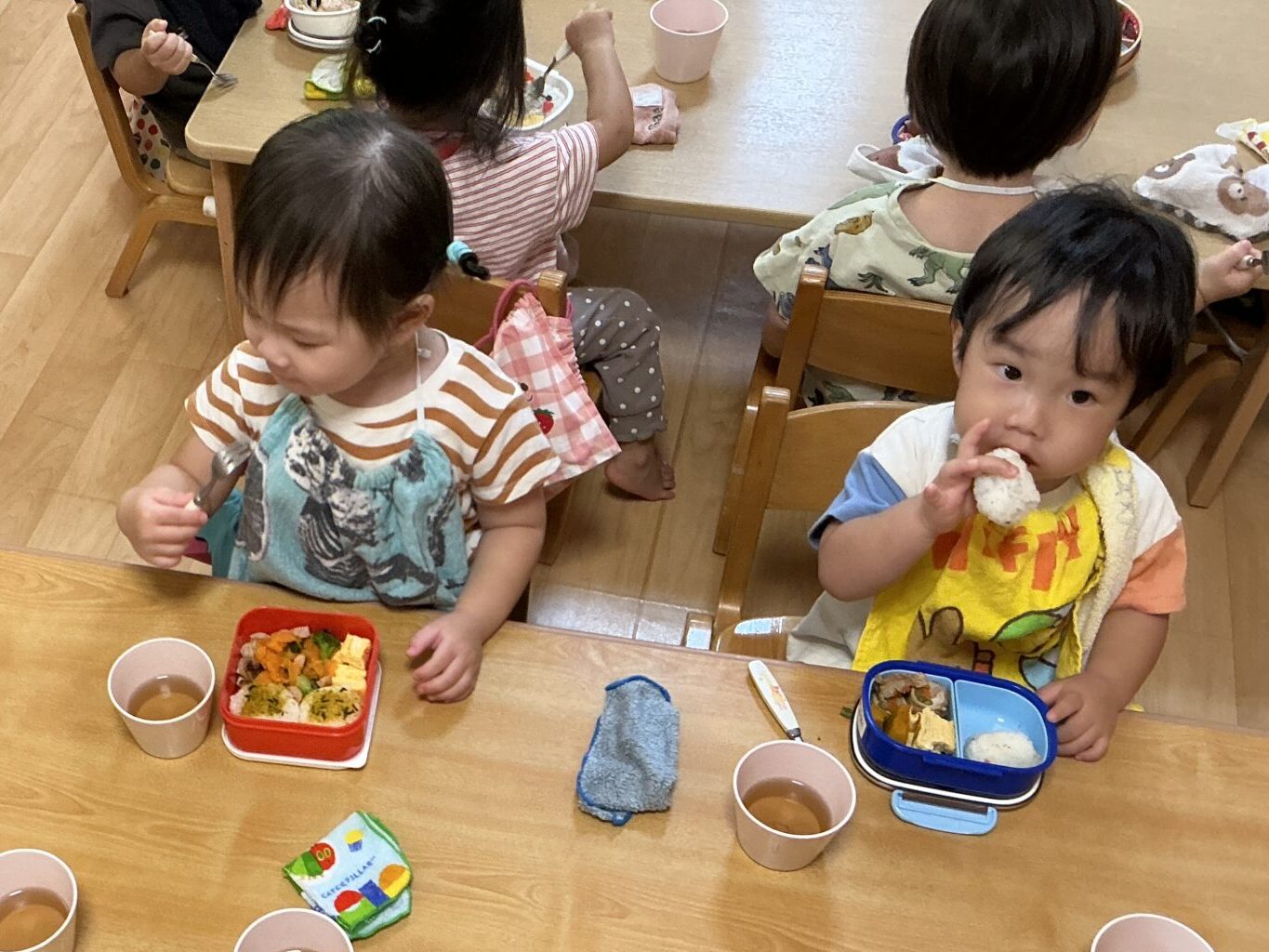 ◇お弁当おいしかったね◇ ・お弁当が入ったカバンを嬉しそうにもって来て見せてくれたり、 「きょうは おべんとうのひなんだよ~」「〇〇がはいってるんだよ」 と教えてくれる子ども達。 ワクワクしながらお弁当の時間まで過ごしていました。 ~乳児~ ~幼児~ 散歩に出かけたり、部屋でたくさんあそんだ後のお弁当はとても 美味しかったようです。 お弁当のご準備ありがとうございました。 2025年10月14日 火曜日 カテゴリー: 園の取り組み