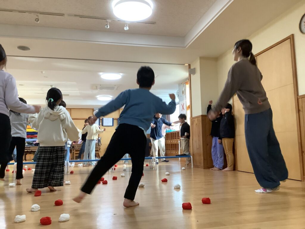 ♪1年生は、「〇×ゲーム」と「おしりすりすりじゃんけん」