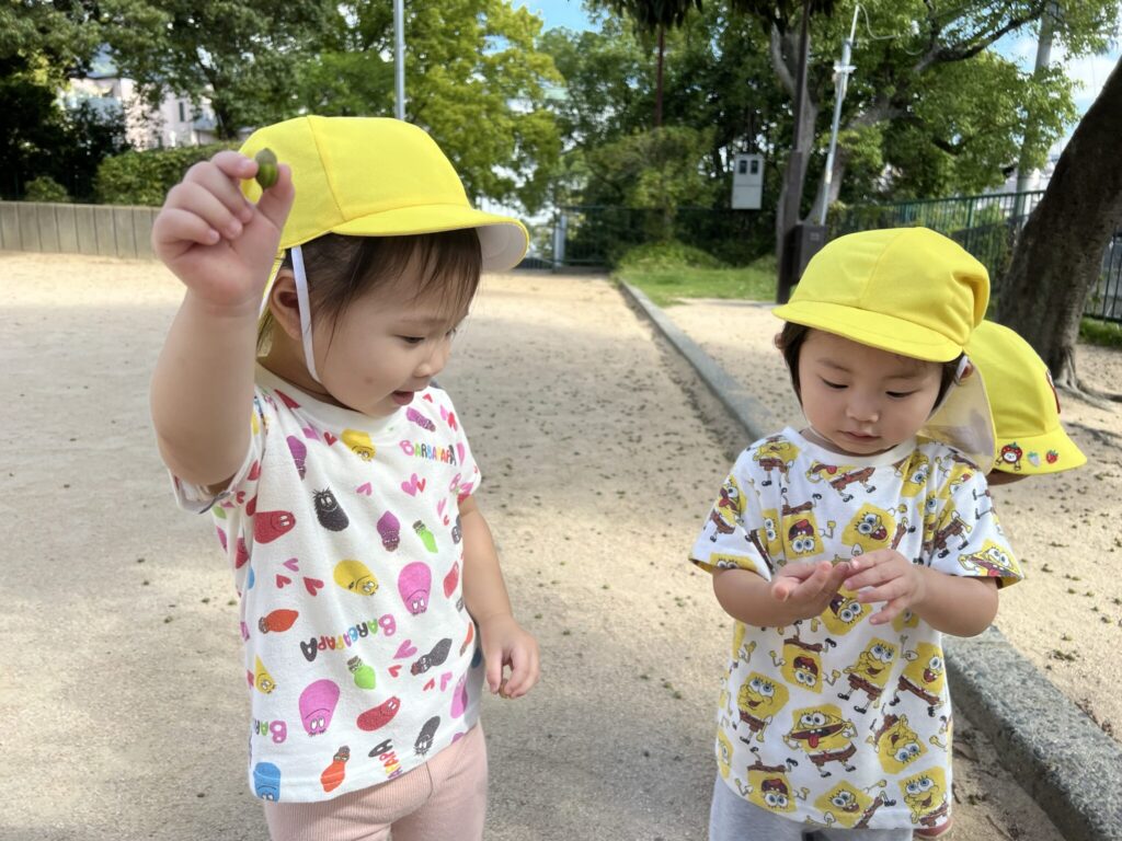 「あっ、どんぐりだ~」と落ちているどんぐりを発見した子ども達。