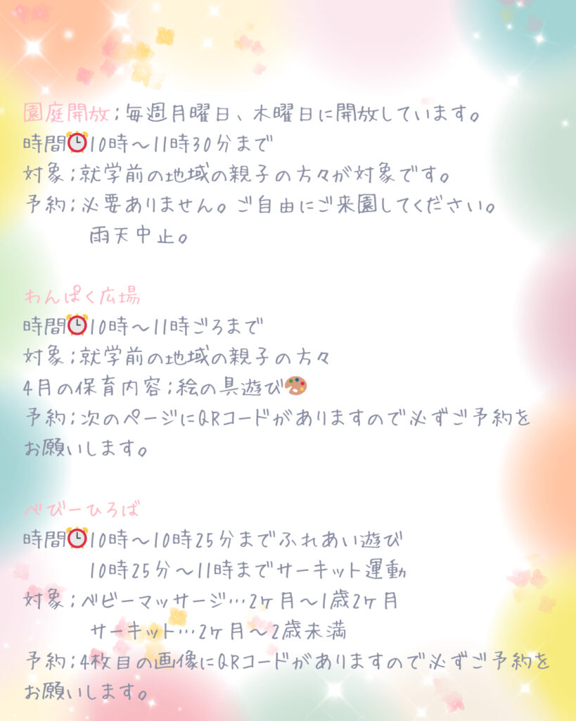 🌷2026年4月 地域子育て支援のご案内