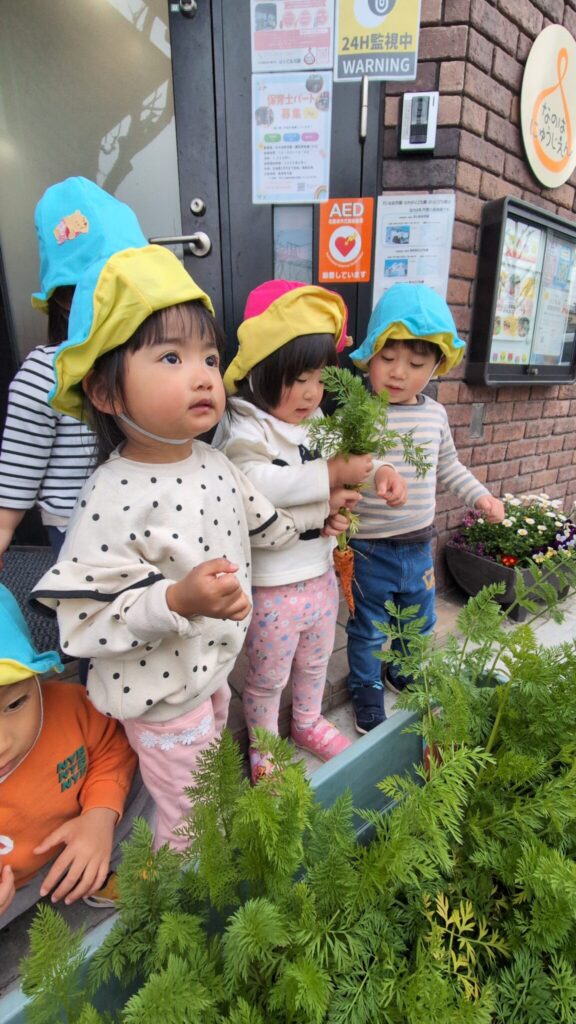 活動ブログ: 2026年 4月 神戸市小規模保育事業 なのは乳児園 > 活動ブログ > 2026年 > 4月 2026年3月1日~31日までの様子 2026年4月3日 金曜日カテゴリー: 園の取り組み 王子動物園にお別れ遠足に行ってきました! お外で食べるお弁当は特別美味しいね! こどもの館号が来てくれたよ~ はい!ポーズ!! 切り株の上でもはい!ポーズ!! みんなで育てたにんじんを収穫しました!2歳児クラスのお友だちはピーラーでにんじんしりしりを作り、みんなで美味しく食べました! レマンさんにお買い物に行き、サンドイッチも作って食べました。たくさん食べれて良かったね~