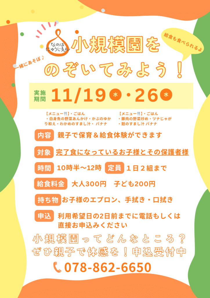 ※誰でも通園制度の申し込みも始まっています。詳しくは神戸市のHPをご覧ください。