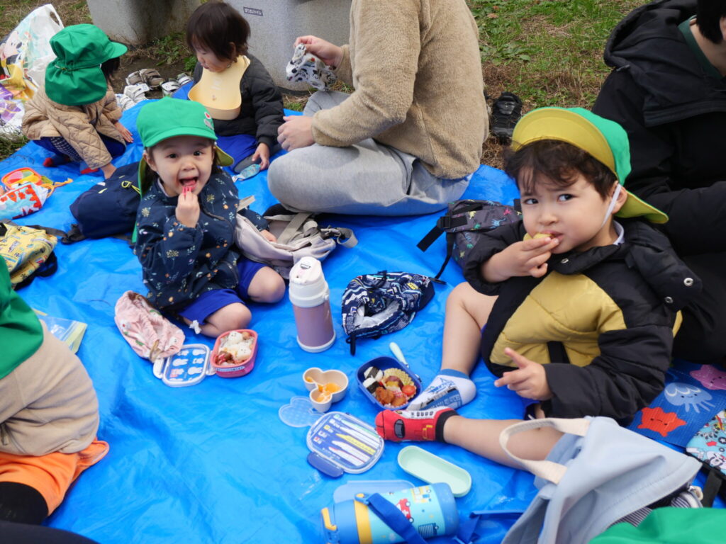 その後は、保育園の裏の公園に移動して、楽しみにしていたお弁当タイムです♪