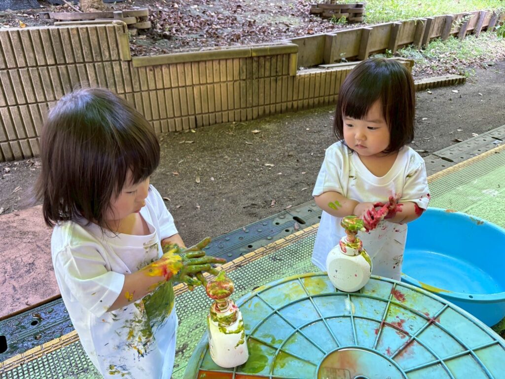 これからもさまざまな方法で絵の具に触れ、絵の具の感触の面白さや、色が混ざって変わる不思議を一緒に体験していきたいと思います☆