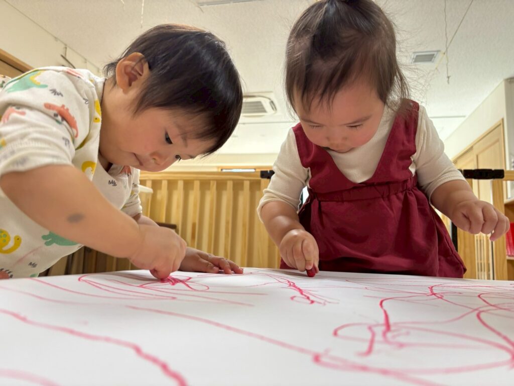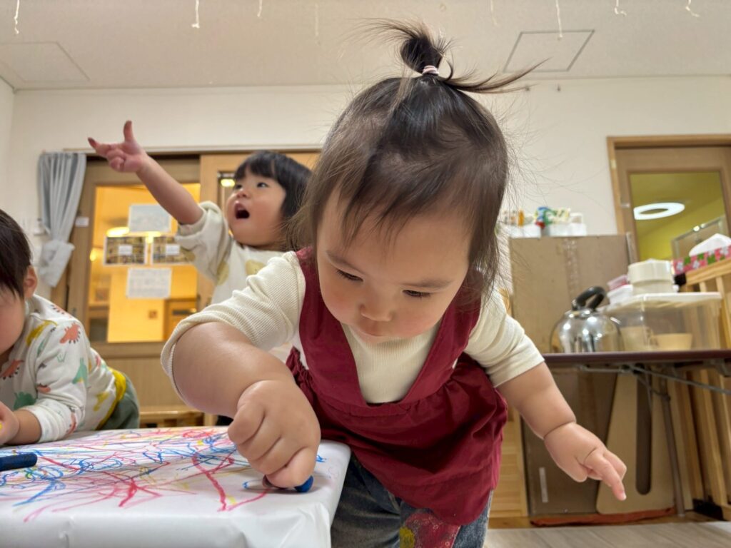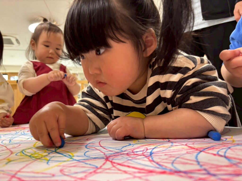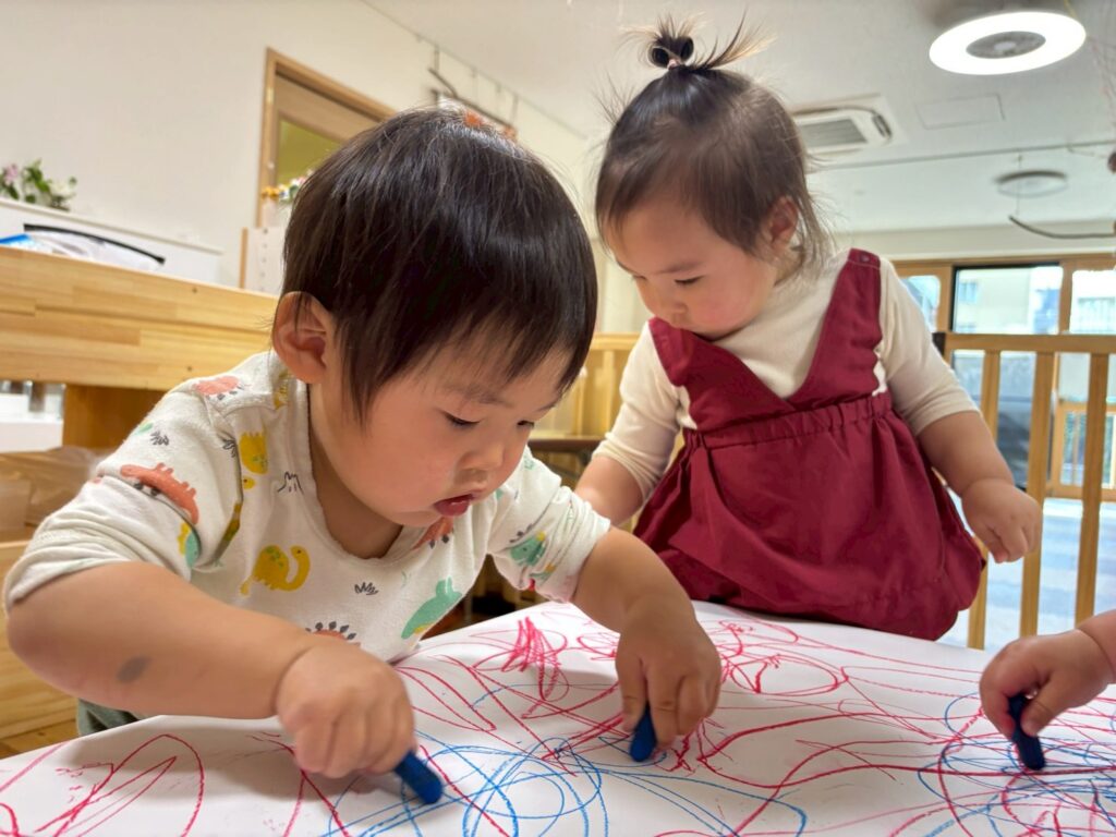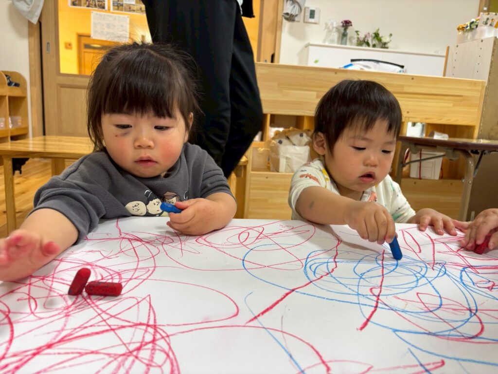 クレパスを手渡すと、迷うことなく描き始める子どもたち!