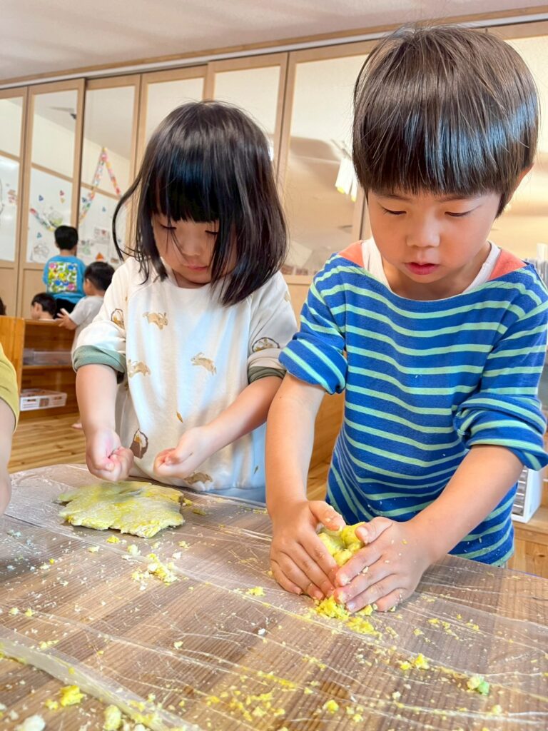 沢山お話ししながら楽しそうにこねて、パン屋さんになりきっていました😆