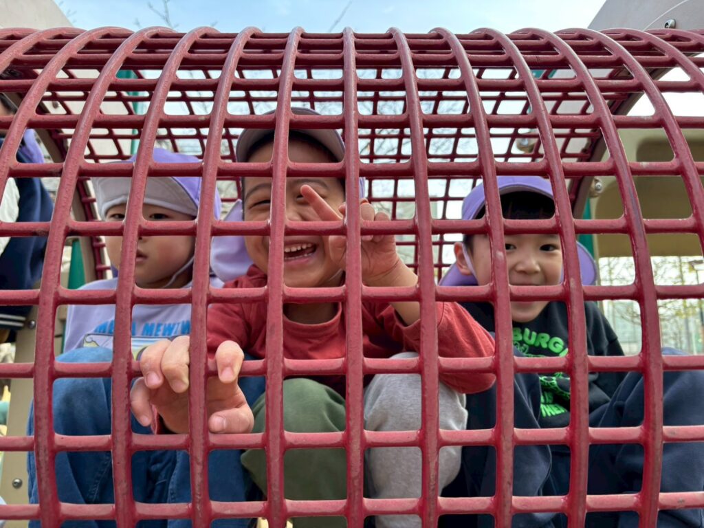 ジャングルジムの頂上にもスイスイと登れる子がたくさんいて、子どもたちの運動神経の良さには、驚くばかりです👀